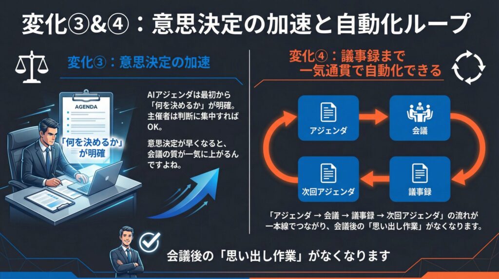 意思決定が早くなると、会議の質が一気に上がるんですよね。